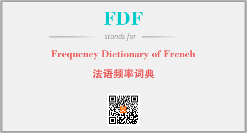 英文缩略词“FDF”经常作为“Frequency Dictionary of French”的英文缩写来使用,中文表示:“法语频率词典”。本文将详细介绍英文缩写词FDF所代表英文单词,其对应的中文拼音、详细解释以及在英语中的流行度。此外,还有关于缩略词FDF的分类、应用领域及相关应用示例等。