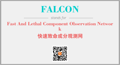 英文缩略词“FALCON”经常作为“Fast And Lethal Component Observation Network”的英文缩写来使用,中文表示:“快速致命成分观测网”。本文将详细介绍英文缩写词FALCON所代表英文单词,其对应的中文拼音、详细解释以及在英语中的流行度。此外,还有关于缩略词FALCON的分类、应用领域及相关应用示例等。