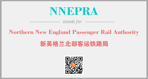 以上为Northern New England Passenger Rail Authority英文缩略词NNEPRA的中文解释,以及该英文缩写在英语的流行度、分类和应用领域方面的信息。