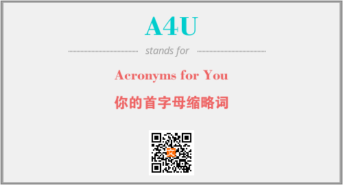 以上为Acronyms for You英文缩略词A4U的中文解释,以及该英文缩写在英语的流行度、分类和应用领域方面的信息。