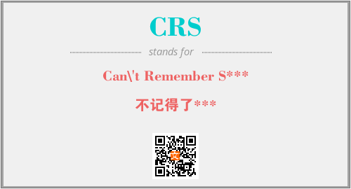 以上为Can\'t Remember S***英文缩略词CRS的中文解释,以及该英文缩写在英语的流行度、分类和应用领域方面的信息。