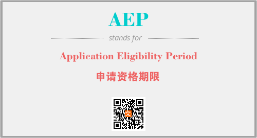 上述内容是“Application Eligibility Period”作为“AEP”的缩写,解释为“申请资格期限”时的信息,以及英文缩略词AEP所代表的英文单词,其对应的中文拼音、详细解释以及在英文中的流行度和相关分类、应用领域及应用示例等。