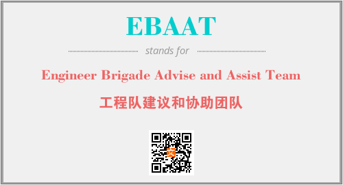 上述内容是“Engineer Brigade Advise and Assist Team”作为“EBAAT”的缩写,解释为“工程队建议和协助团队”时的信息,以及英文缩略词EBAAT所代表的英文单词,其对应的中文拼音、详细解释以及在英文中的流行度和相关分类、应用领域及应用示例等。