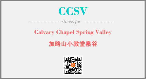 英文缩略词“CCSV”经常作为“Calvary Chapel Spring Valley”的英文缩写来使用,中文表示:“加略山小教堂泉谷”。本文将详细介绍英文缩写词CCSV所代表英文单词,其对应的中文拼音、详细解释以及在英语中的流行度。此外,还有关于缩略词CCSV的分类、应用领域及相关应用示例等。