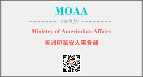 上述内容是“Ministry of Amerindian Affairs”作为“MOAA”的缩写,解释为“美洲印第安人事务部”时的信息,以及英文缩略词MOAA所代表的英文单词,其对应的中文拼音、详细解释以及在英文中的流行度和相关分类、应用领域及应用示例等。