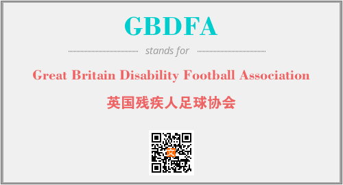 上述内容是“Great Britain Disability Football Association”作为“GBDFA”的缩写,解释为“英国残疾人足球协会”时的信息,以及英文缩略词GBDFA所代表的英文单词,其对应的中文拼音、详细解释以及在英文中的流行度和相关分类、应用领域及应用示例等。