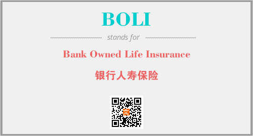 上述内容是“Bank Owned Life Insurance”作为“BOLI”的缩写,解释为“银行人寿保险”时的信息,以及英文缩略词BOLI所代表的英文单词,其对应的中文拼音、详细解释以及在英文中的流行度和相关分类、应用领域及应用示例等。