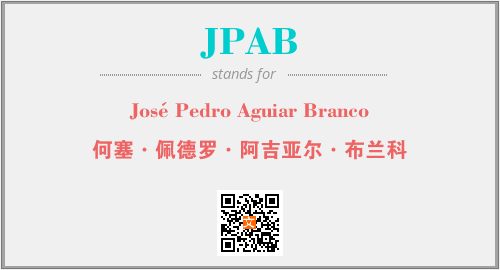 上述内容是“José Pedro Aguiar Branco”作为“JPAB”的缩写,解释为“何塞·佩德罗·阿吉亚尔·布兰科”时的信息,以及英文缩略词JPAB所代表的英文单词,其对应的中文拼音、详细解释以及在英文中的流行度和相关分类、应用领域及应用示例等。