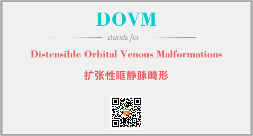 英文缩略词“DOVM”经常作为“Distensible Orbital Venous Malformations”的英文缩写来使用,中文表示:“扩张性眶静脉畸形”。本文将详细介绍英文缩写词DOVM所代表英文单词,其对应的中文拼音、详细解释以及在英语中的流行度。此外,还有关于缩略词DOVM的分类、应用领域及相关应用示例等。