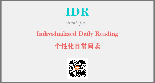 以上为Individualized Daily Reading英文缩略词IDR的中文解释,以及该英文缩写在英语的流行度、分类和应用领域方面的信息。