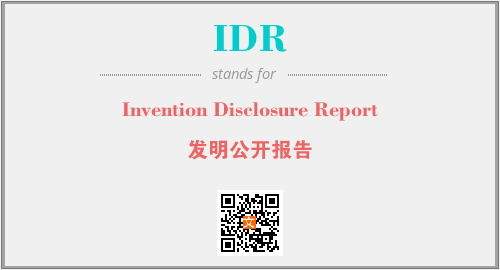 上述内容是“Invention Disclosure Report”作为“IDR”的缩写,解释为“发明公开报告”时的信息,以及英文缩略词IDR所代表的英文单词,其对应的中文拼音、详细解释以及在英文中的流行度和相关分类、应用领域及应用示例等。