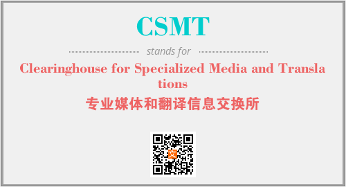 上述内容是“Clearinghouse for Specialized Media and Translations”作为“CSMT”的缩写,解释为“专业媒体和翻译信息交换所”时的信息,以及英文缩略词CSMT所代表的英文单词,其对应的中文拼音、详细解释以及在英文中的流行度和相关分类、应用领域及应用示例等。