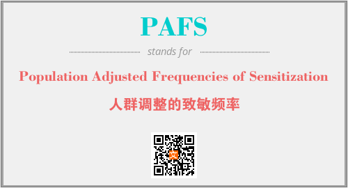 上述内容是“Population Adjusted Frequencies of Sensitization”作为“PAFS”的缩写,解释为“人群调整的致敏频率”时的信息,以及英文缩略词PAFS所代表的英文单词,其对应的中文拼音、详细解释以及在英文中的流行度和相关分类、应用领域及应用示例等。