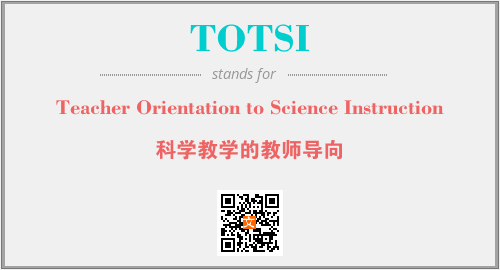 上述内容是“Teacher Orientation to Science Instruction”作为“TOTSI”的缩写,解释为“科学教学的教师导向”时的信息,以及英文缩略词TOTSI所代表的英文单词,其对应的中文拼音、详细解释以及在英文中的流行度和相关分类、应用领域及应用示例等。
