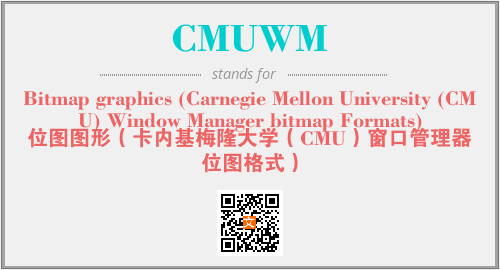 上述内容是“Bitmap graphics (Carnegie Mellon University (CMU) Window Manager bitmap Formats)”作为“CMUWM”的缩写,解释为“位图图形(卡内基梅隆大学(CMU)窗口管理器位图格式)”时的信息,以及英文缩略词CMUWM所代表的英文单词,其对应的中文拼音、详细解释以及在英文中的流行度和相关分类、应用领域及应用示例等。