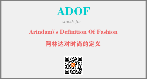 上述内容是“Arindam\'s Definition Of Fashion”作为“ADOF”的缩写,解释为“阿林达对时尚的定义”时的信息,以及英文缩略词ADOF所代表的英文单词,其对应的中文拼音、详细解释以及在英文中的流行度和相关分类、应用领域及应用示例等。