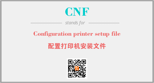 上述内容是“Configuration printer setup file”作为“CNF”的缩写,解释为“配置打印机安装文件”时的信息,以及英文缩略词CNF所代表的英文单词,其对应的中文拼音、详细解释以及在英文中的流行度和相关分类、应用领域及应用示例等。