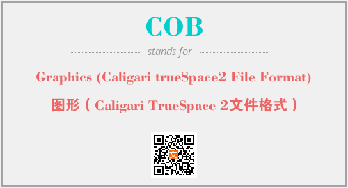 英文缩略词“COB”经常作为“Graphics (Caligari trueSpace2 File Format)”的英文缩写来使用,中文表示:“图形(Caligari TrueSpace 2文件格式)”。本文将详细介绍英文缩写词COB所代表英文单词,其对应的中文拼音、详细解释以及在英语中的流行度。此外,还有关于缩略词COB的分类、应用领域及相关应用示例等。