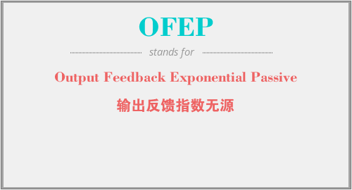 上述内容是“Output Feedback Exponential Passive”作为“OFEP”的缩写,解释为“输出反馈指数无源”时的信息,以及英文缩略词OFEP所代表的英文单词,其对应的中文拼音、详细解释以及在英文中的流行度和相关分类、应用领域及应用示例等。