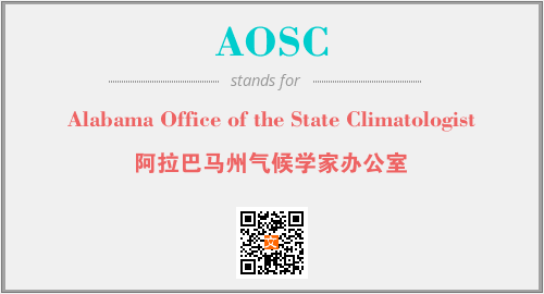 上述内容是“Alabama Office of the State Climatologist”作为“AOSC”的缩写,解释为“阿拉巴马州气候学家办公室”时的信息,以及英文缩略词AOSC所代表的英文单词,其对应的中文拼音、详细解释以及在英文中的流行度和相关分类、应用领域及应用示例等。
