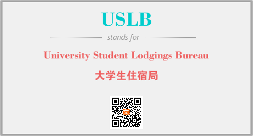英文缩略词“USLB”经常作为“University Student Lodgings Bureau”的英文缩写来使用,中文表示:“大学生住宿局”。本文将详细介绍英文缩写词USLB所代表英文单词,其对应的中文拼音、详细解释以及在英语中的流行度。此外,还有关于缩略词USLB的分类、应用领域及相关应用示例等。