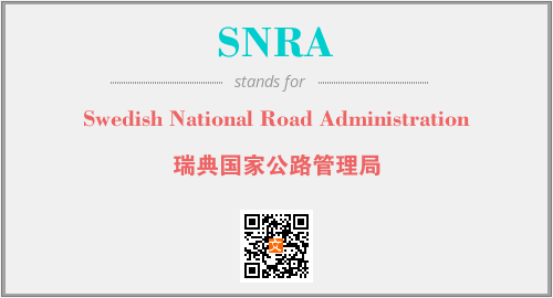 上述内容是“Swedish National Road Administration”作为“SNRA”的缩写,解释为“瑞典国家公路管理局”时的信息,以及英文缩略词SNRA所代表的英文单词,其对应的中文拼音、详细解释以及在英文中的流行度和相关分类、应用领域及应用示例等。