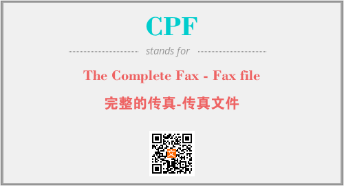 英文缩略词“CPF”经常作为“The Complete Fax - Fax file”的英文缩写来使用,中文表示:“完整的传真-传真文件”。本文将详细介绍英文缩写词CPF所代表英文单词,其对应的中文拼音、详细解释以及在英语中的流行度。此外,还有关于缩略词CPF的分类、应用领域及相关应用示例等。