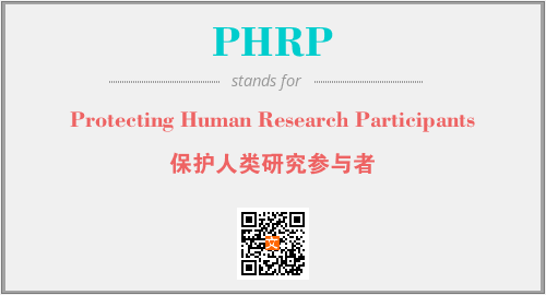 上述内容是“Protecting Human Research Participants”作为“PHRP”的缩写,解释为“保护人类研究参与者”时的信息,以及英文缩略词PHRP所代表的英文单词,其对应的中文拼音、详细解释以及在英文中的流行度和相关分类、应用领域及应用示例等。