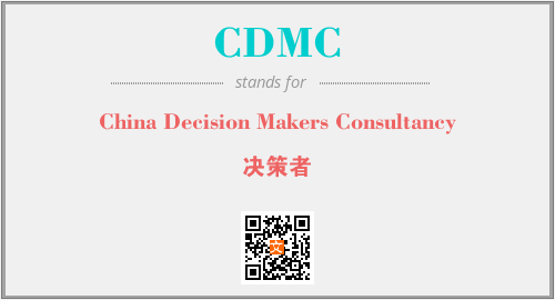英文缩略词“CDMC”经常作为“China Decision Makers Consultancy”的英文缩写来使用,中文表示:“决策者”。本文将详细介绍英文缩写词CDMC所代表英文单词,其对应的中文拼音、详细解释以及在英语中的流行度。此外,还有关于缩略词CDMC的分类、应用领域及相关应用示例等。