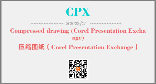 英文缩略词“CPX”经常作为“Compressed drawing (Corel Presentation Exchange)”的英文缩写来使用,中文表示:“压缩图纸(Corel Presentation Exchange)”。本文将详细介绍英文缩写词CPX所代表英文单词,其对应的中文拼音、详细解释以及在英语中的流行度。此外,还有关于缩略词CPX的分类、应用领域及相关应用示例等。