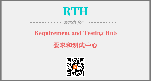 英文缩略词“RTH”经常作为“Requirement and Testing Hub”的英文缩写来使用,中文表示:“要求和测试中心”。本文将详细介绍英文缩写词RTH所代表英文单词,其对应的中文拼音、详细解释以及在英语中的流行度。此外,还有关于缩略词RTH的分类、应用领域及相关应用示例等。