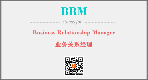 英文缩略词“BRM”经常作为“Business Relationship Manager”的英文缩写来使用,中文表示:“业务关系经理”。本文将详细介绍英文缩写词BRM所代表英文单词,其对应的中文拼音、详细解释以及在英语中的流行度。此外,还有关于缩略词BRM的分类、应用领域及相关应用示例等。