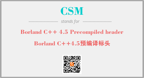 英文缩略词“CSM”经常作为“Borland C++ 4.5 Precompiled header”的英文缩写来使用,中文表示:“Borland C++4.5预编译标头”。本文将详细介绍英文缩写词CSM所代表英文单词,其对应的中文拼音、详细解释以及在英语中的流行度。此外,还有关于缩略词CSM的分类、应用领域及相关应用示例等。