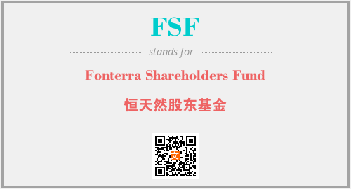 上述内容是“Fonterra Shareholders Fund”作为“FSF”的缩写,解释为“恒天然股东基金”时的信息,以及英文缩略词FSF所代表的英文单词,其对应的中文拼音、详细解释以及在英文中的流行度和相关分类、应用领域及应用示例等。