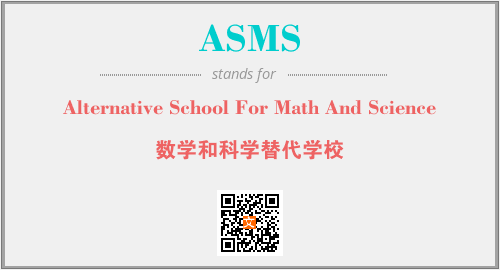 英文缩略词“ASMS”经常作为“Alternative School For Math And Science”的英文缩写来使用,中文表示:“数学和科学替代学校”。本文将详细介绍英文缩写词ASMS所代表英文单词,其对应的中文拼音、详细解释以及在英语中的流行度。此外,还有关于缩略词ASMS的分类、应用领域及相关应用示例等。