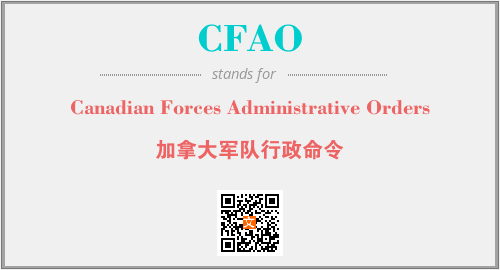 英文缩略词“CFAO”经常作为“Canadian Forces Administrative Orders”的英文缩写来使用,中文表示:“加拿大军队行政命令”。本文将详细介绍英文缩写词CFAO所代表英文单词,其对应的中文拼音、详细解释以及在英语中的流行度。此外,还有关于缩略词CFAO的分类、应用领域及相关应用示例等。