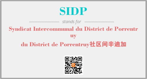 上述内容是“Syndicat Intercommunal du District de Porrentruy”作为“SIDP”的缩写,解释为“du District de Porrentruy社区间辛迪加”时的信息,以及英文缩略词SIDP所代表的英文单词,其对应的中文拼音、详细解释以及在英文中的流行度和相关分类、应用领域及应用示例等。