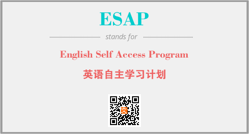 英文缩略词“ESAP”经常作为“English Self Access Program”的英文缩写来使用,中文表示:“英语自主学习计划”。本文将详细介绍英文缩写词ESAP所代表英文单词,其对应的中文拼音、详细解释以及在英语中的流行度。此外,还有关于缩略词ESAP的分类、应用领域及相关应用示例等。