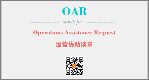 上述内容是“Operations Assistance Request”作为“OAR”的缩写,解释为“运营协助请求”时的信息,以及英文缩略词OAR所代表的英文单词,其对应的中文拼音、详细解释以及在英文中的流行度和相关分类、应用领域及应用示例等。
