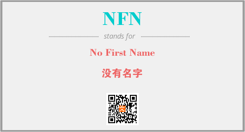 上述内容是“No First Name”作为“NFN”的缩写,解释为“没有名字”时的信息,以及英文缩略词NFN所代表的英文单词,其对应的中文拼音、详细解释以及在英文中的流行度和相关分类、应用领域及应用示例等。