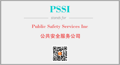 上述内容是“Public Safety Services Inc”作为“PSSI”的缩写,解释为“公共安全服务公司”时的信息,以及英文缩略词PSSI所代表的英文单词,其对应的中文拼音、详细解释以及在英文中的流行度和相关分类、应用领域及应用示例等。
