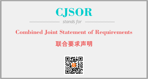 英文缩略词“CJSOR”经常作为“Combined Joint Statement of Requirements”的英文缩写来使用,中文表示:“联合要求声明”。本文将详细介绍英文缩写词CJSOR所代表英文单词,其对应的中文拼音、详细解释以及在英语中的流行度。此外,还有关于缩略词CJSOR的分类、应用领域及相关应用示例等。