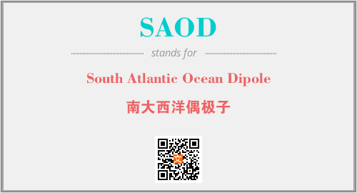 上述内容是“South Atlantic Ocean Dipole”作为“SAOD”的缩写,解释为“南大西洋偶极子”时的信息,以及英文缩略词SAOD所代表的英文单词,其对应的中文拼音、详细解释以及在英文中的流行度和相关分类、应用领域及应用示例等。