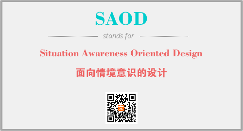 上述内容是“Situation Awareness Oriented Design”作为“SAOD”的缩写,解释为“面向情境意识的设计”时的信息,以及英文缩略词SAOD所代表的英文单词,其对应的中文拼音、详细解释以及在英文中的流行度和相关分类、应用领域及应用示例等。