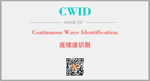 英文缩略词“CWID”经常作为“Continuous Wave Identification”的英文缩写来使用,中文表示:“连续波识别”。本文将详细介绍英文缩写词CWID所代表英文单词,其对应的中文拼音、详细解释以及在英语中的流行度。此外,还有关于缩略词CWID的分类、应用领域及相关应用示例等。