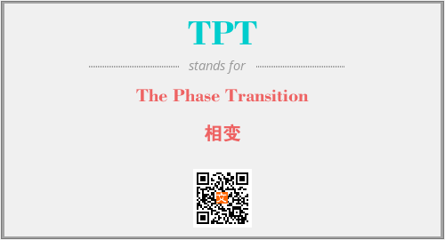 英文缩略词“TPT”经常作为“The Phase Transition”的英文缩写来使用,中文表示:“相变”。本文将详细介绍英文缩写词TPT所代表英文单词,其对应的中文拼音、详细解释以及在英语中的流行度。此外,还有关于缩略词TPT的分类、应用领域及相关应用示例等。