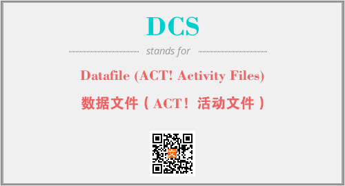 英文缩略词“DCS”经常作为“Datafile (ACT! Activity Files)”的英文缩写来使用,中文表示:“数据文件(ACT!活动文件)”。本文将详细介绍英文缩写词DCS所代表英文单词,其对应的中文拼音、详细解释以及在英语中的流行度。此外,还有关于缩略词DCS的分类、应用领域及相关应用示例等。