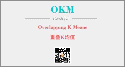 英文缩略词“OKM”经常作为“Overlapping K Means”的英文缩写来使用,中文表示:“重叠K均值”。本文将详细介绍英文缩写词OKM所代表英文单词,其对应的中文拼音、详细解释以及在英语中的流行度。此外,还有关于缩略词OKM的分类、应用领域及相关应用示例等。