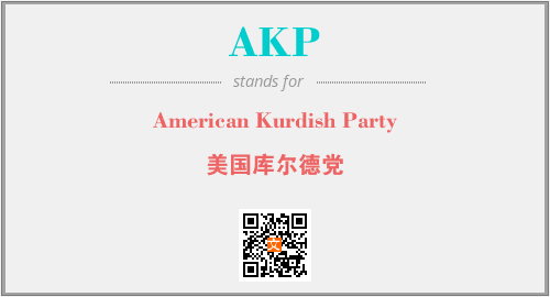 英文缩略词“AKP”经常作为“American Kurdish Party”的英文缩写来使用,中文表示:“美国库尔德党”。本文将详细介绍英文缩写词AKP所代表英文单词,其对应的中文拼音、详细解释以及在英语中的流行度。此外,还有关于缩略词AKP的分类、应用领域及相关应用示例等。