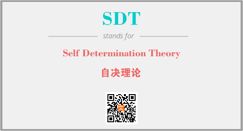 上述内容是“Self Determination Theory”作为“SDT”的缩写,解释为“自决理论”时的信息,以及英文缩略词SDT所代表的英文单词,其对应的中文拼音、详细解释以及在英文中的流行度和相关分类、应用领域及应用示例等。